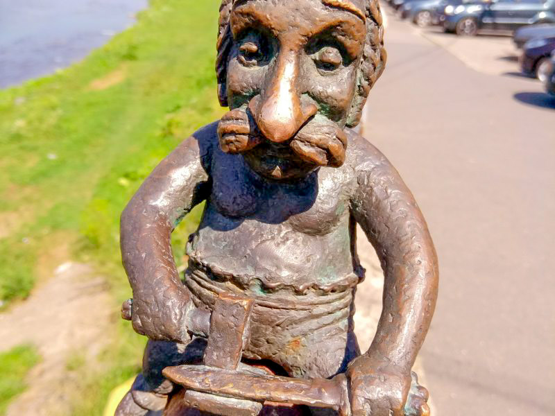 Фігура пам’ятника схожа на відомих персонажів Астерікса і Обелікса. Їхній мукачівський “товариш” у руках тримає кельтський меч. До речі, оригінальний прообраз кельтського меча нині зберігається в історичному музеї Мукачівського замку.
