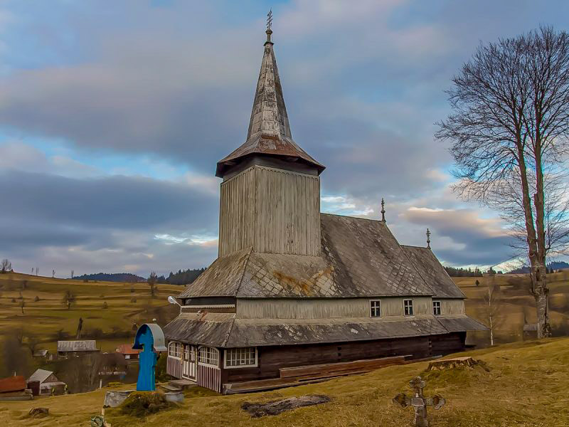 Маленька дерев’яна церква і дзвіниця розташовані таким чином, що з будь-якої сторони створюють ідеальну композицію.