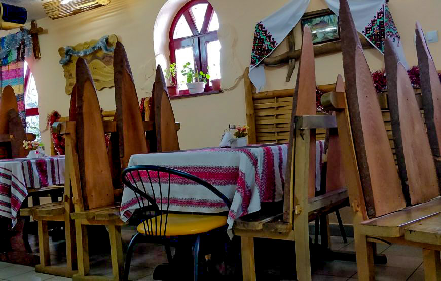 Меню ресторана ориентировано на украинские блюда, но с акцентом на местный колорит и вкусные особенности венгерской и словацкой кухонь. Все блюда готовятся под индивидуальный заказ, поэтому время ожидания может занять до 40 минут. Но это время вы можете сократить смакуя настоящее закарпатское вино или сливовицу, от нашего шеф-повара.