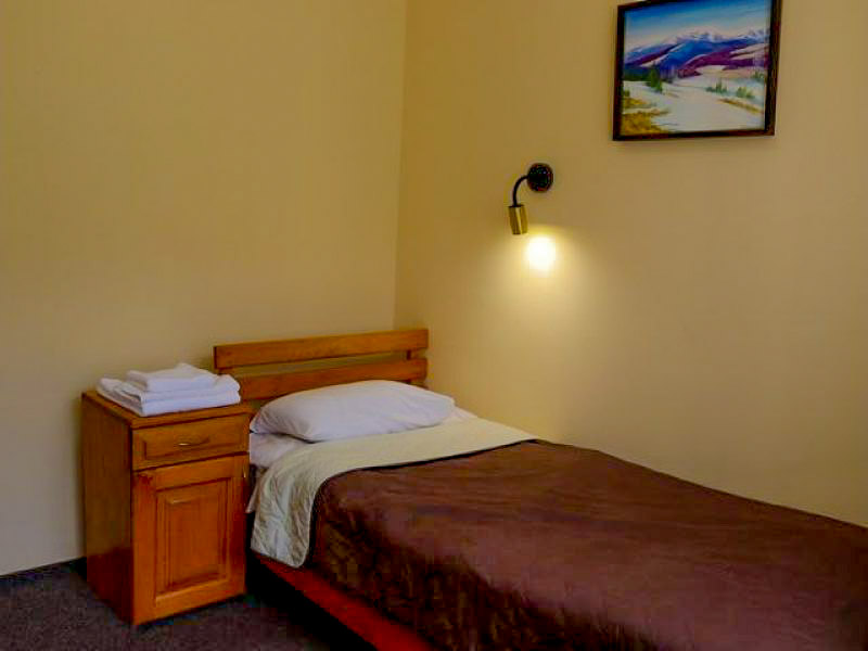 Одноместный эконом номер обойдется от 724 грн. Здесь есть душевая кабина, мебель, постель, телевизор и балкон. В стоимость входит трехразовое питание, минеральные ванны и лечение.