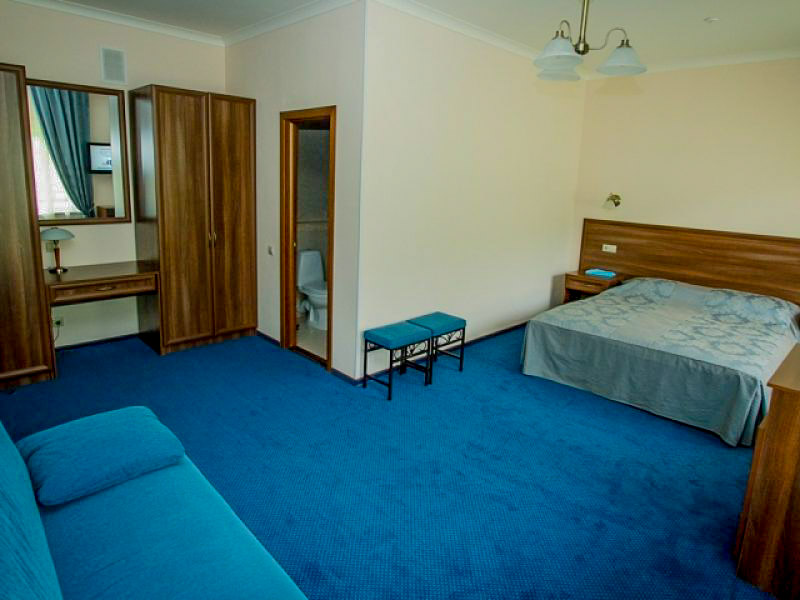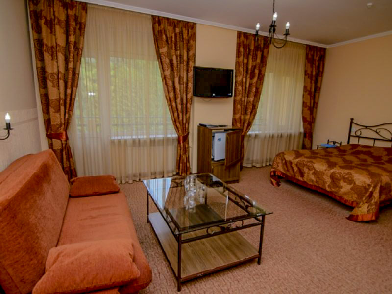 Цены на одноместный стандарт начинаются с 1063 грн. Семейный пакет стоит от 1985 грн. Во всех комнатах есть интернет, отопление, современное телевидение, телефон и холодильник.