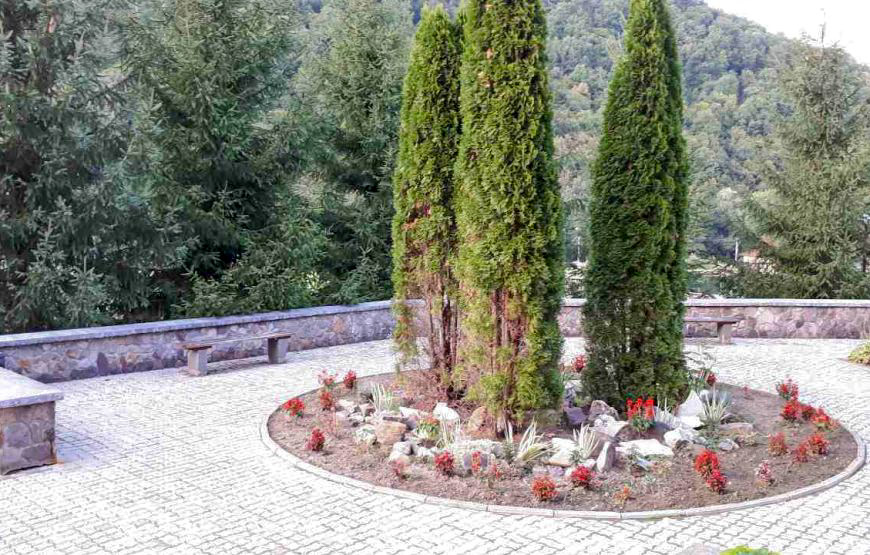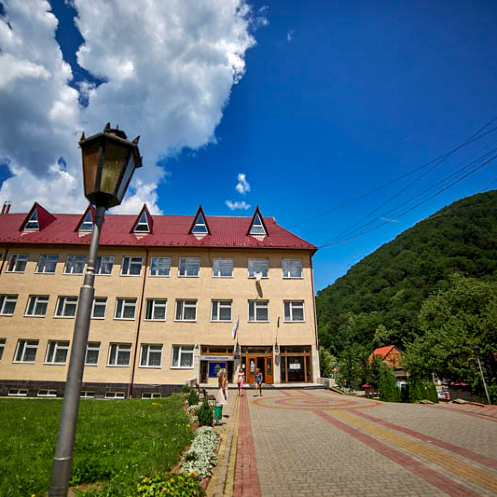 Рядом с лечебно-профилактическим учреждением высятся три окруженных лесом горных пика, защищающих его территорию от ветра. Неподалеку протекает река Тиса.