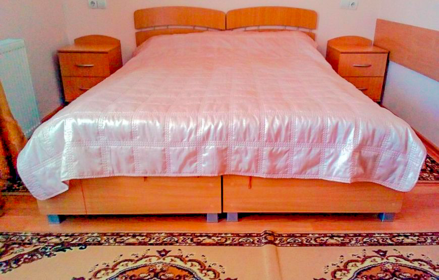 Уютный 2-х местный номер с большой двуспальной кроватью и видом на живописные Карпаты. Прямо перед окнами номера раскинулся горный лес, дающий тень и прохладу. Поэтому даже в солнечный летний день гости не испытывают необходимости в кондиционере. Помимо кровати с ортопедическим матрасом, номер оборудован столом, стульями, шкафом, современной туалетной комнатой с душевой кабиной и феном. В номере есть балкон, что особенно важно для гостей, которые ценят свежий воздух. Автономное отопление в усадьбе Лесная Песня согреет гостей даже в мороз и стужу.