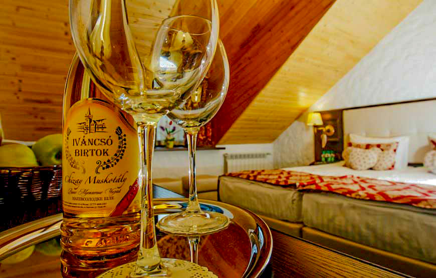 Романтика на двоих… Бокал Токайского на подоконнике, прекрасный вид из окна – вариант в комплекте с неизменно качественным сервисом и специальными предложениями для гостей термал-гостиницы “Iváncsó Birtok”.