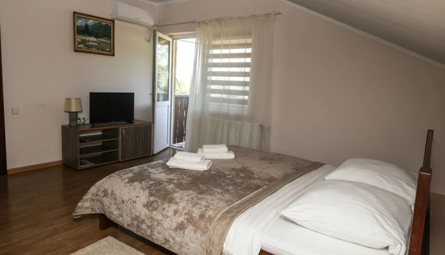 Номер Супериор с балконом в отеле «Лесная сказка», расположенном в селе Велятино, включает холодильник, телевизор, чайник, душевую кабинку, санузел, кондиционеры, балкон.