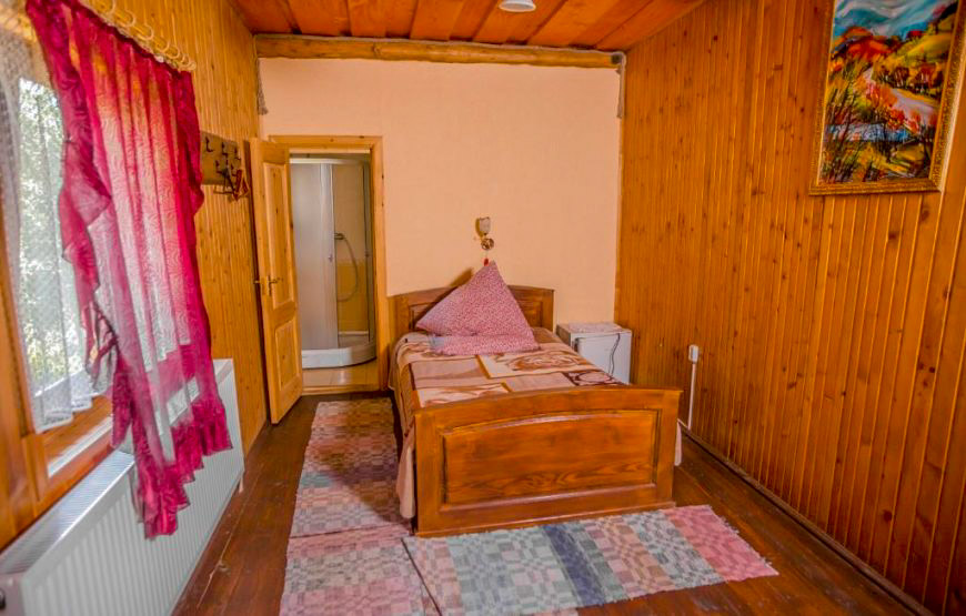 Шале в усадьбе “Над потоком” в селе Лумшоры с принадлежностями для приготовления барбекю и посудой.