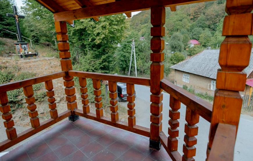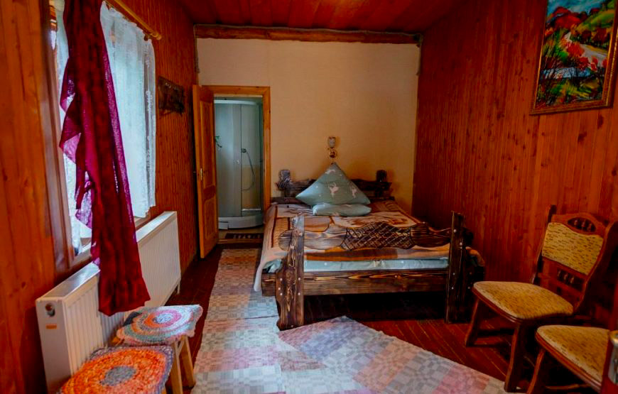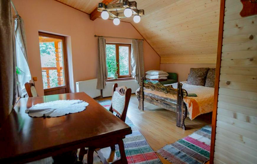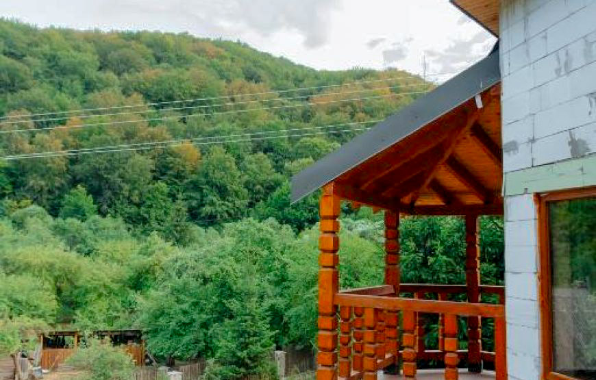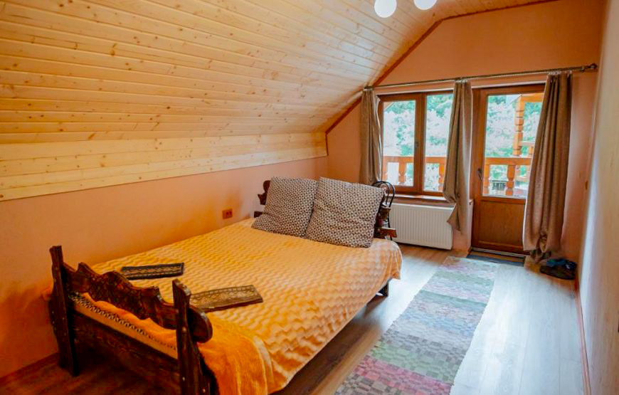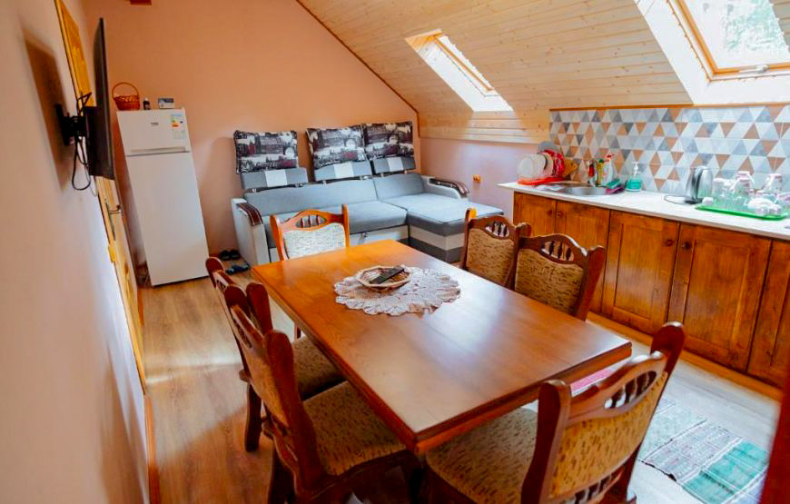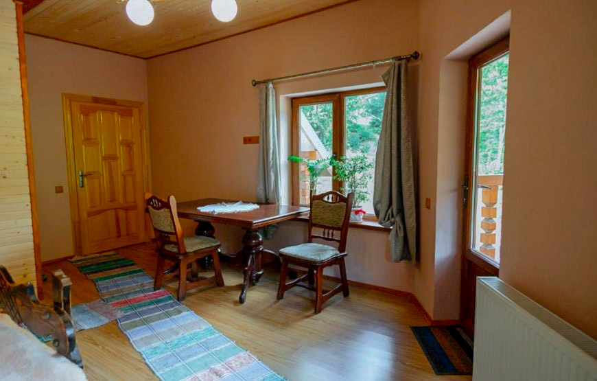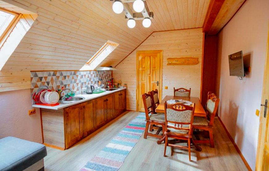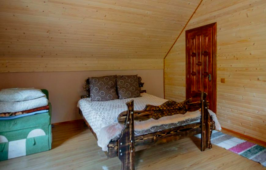 Шале с тремя спальнями и кухней в усадьбе “Над потоком” в деревне Лумшоры. К услугам гостей посуда, барбекю, электрический чайник.
