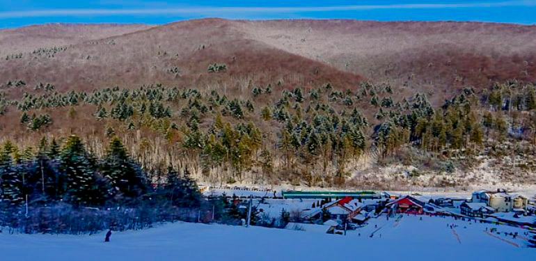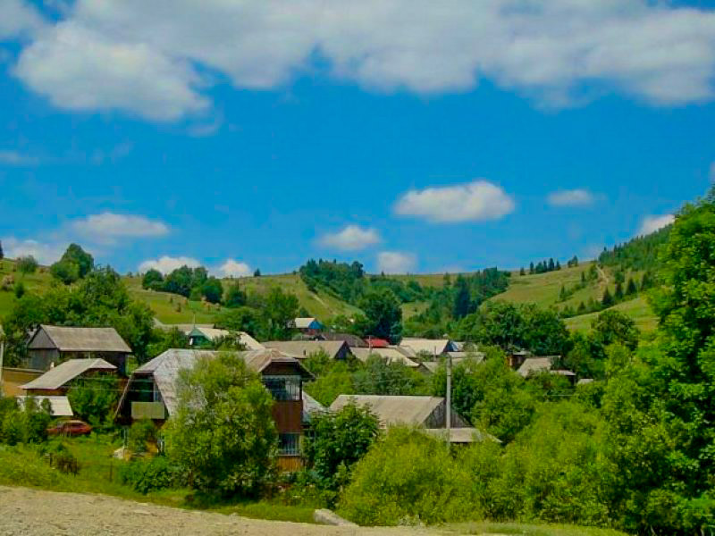 Святыня сооружена из еловых брусьев и располагается на отвесном склоне над селом у нового кладбища. Вокруг храма открывается невероятная горная панорама.
