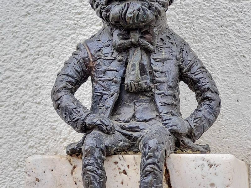 Эту бронзовую мини-скульптуру скульптора Михаила Колодко и кузнеца Романа Мурника торжественно открыли 11 ноября 2017 в 11 час. 11 мин.