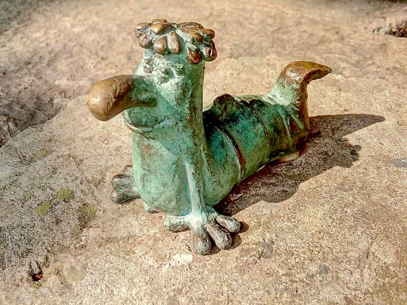 По легенде, перед тем как отправиться на рыбалку, нужно обязательно потереть носик этому бронзовому червю на хороший клев. Именно поэтому скульптор сделал носик больше, чтобы его на дольше хватило.